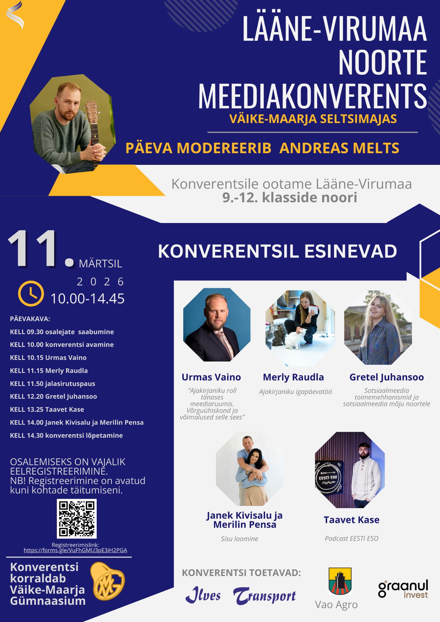 Ootame konverentsile Lääne-Virumaa 9.-12. klasside noori. Osalemiseks vajalik eelregistreerimine. Ole kiire, sest kohtade arv on piiratud!